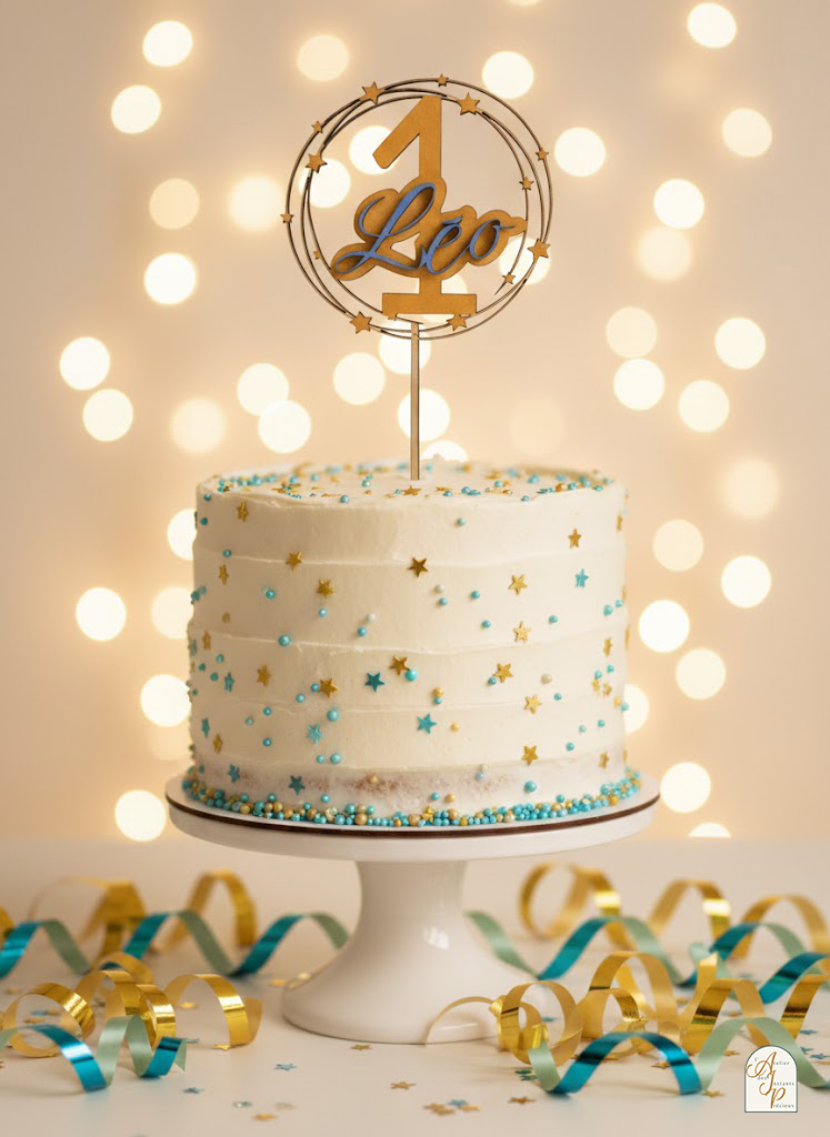 Transformez votre gâteau en une pièce maîtresse spectaculaire. Notre Cake Topper en bois est la touche finale élégante et personnelle pour chaque célébration, de l’anniversaire au baptême.